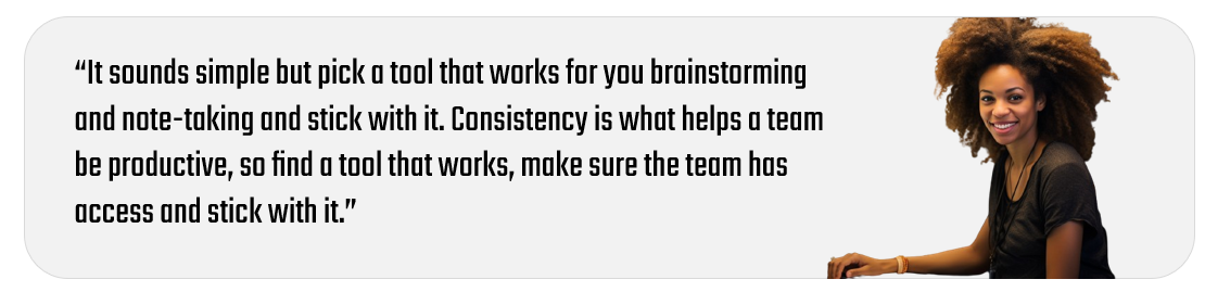 Again, tools like Notion, Miro, OneNote, and other SAAS-based tools are great for both creating that central digital whiteboard where you can both brainstorm, share ideas and shape the data story.
