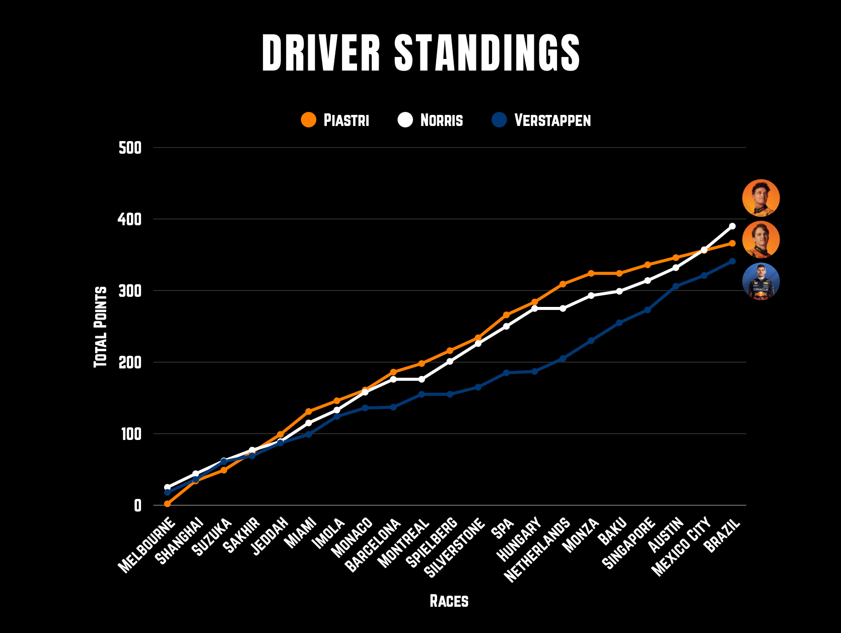 The Drivers’ Championship tightened even further in São Paulo, but the balance of power has clearly shifted toward Lando Norris.